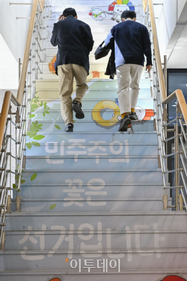 ▲제21대 대통령 선거일이 확정된 8일 경기 과천시 중앙선거관리위원회 청사에서 직원들이 이동하고 있다. 정부는 이날 한덕수 국무총리 대통령 권한대행 주재로 열린 국무회의에서 윤석열 전 대통령 파면으로 치러지는 21대 대통령 선거일을 6월 3일로 확정했다. 조현호 기자 hyunho@