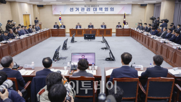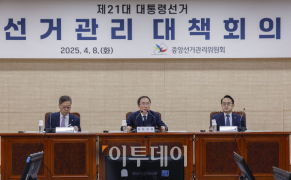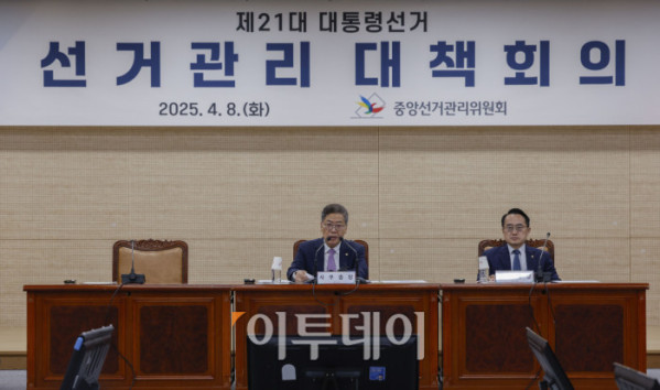 김필곤 중앙선거관리위원회 상임위원이 8일 경기 과천시 중앙선거관리위원회 청사에서 열린 21대 대통령선거 선거관리 대책회의에서 모두발언을 하고 있다. 정부는 이날 한덕수 국무총리 대통령 권한대행 주재로 열린 국무회의에서 윤석열 전 대통령 파면으로 치러지는 21대 대통령 선거일을 6월 3일로 확정했다. 조현호 기자 hyunho@