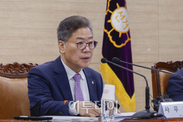 ▲김용빈 중앙선거관리위원회 사무총장이 8일 경기 과천시 중앙선거관리위원회 청사에서 열린 21대 대통령선거 선거관리 대책회의에서 모두발언을 하고 있다. 조현호 기자 hyunho@
