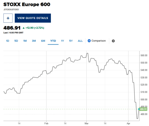 ▲스톡스유럽600지수 추이. 8일(현지시간) 종가 486.91. 출처 CNBC