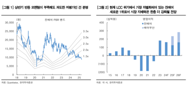 이어 “반면 주가는 다른 LCC들과 무차별적으로 조정받아 2025F PER이 5배에 불과하다”며 “재평가 여력이 가장 높다는 점에서 매수 의견을 유지한다”고 덧붙였다.
