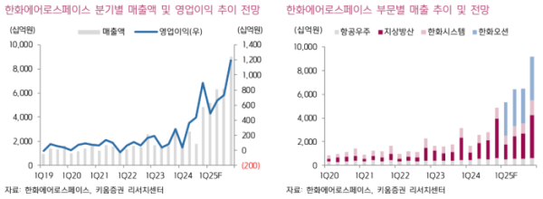 이 연구원은 "한화에어로스페이스는 2025년 실적 가이던스로 시장 컨센서스를 웃도는 수준인 매출 30조 원, 영업이익 3조 원을 제시했는데, 올해 지상방산과 연결 편입된 한화오션의 실적 성장세가 두드러질 것으로 판단한다"라며 "지상방산 부문은 연초에 제시했던 폴란드향 K9/천무의 인도 예상치 70문, 50대를 초과 달성할 것으로 예상하고 있어 지상방산 부문의 호실적이 기대된다"라고 전했다.