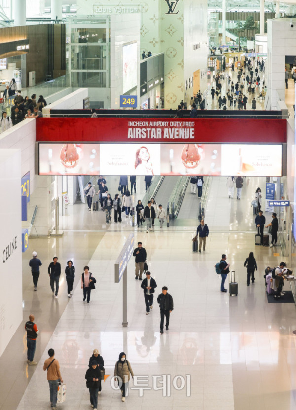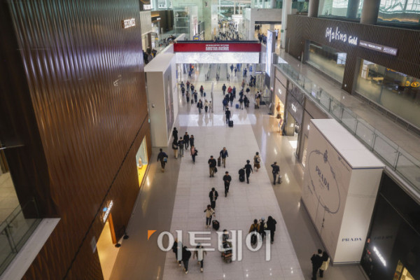 ▲원·달러 환율이 고공행진하면서 면세점 업계에도 경고등이 켜졌다. 9일 서울 외환시장에서 원·달러 환율은 오전 10시 기준 전날 주간 거래 종가보다 9.8원 오른 1483.0원을 기록했다. 이는 2009년 금융위기 이후 가장 높은 수준이다. 한국면세점협회에 따르면 1월 월간 면세점 매출액은 9544억원으로 전년 동월보다 40% 급감했다. 면세점 월매출이 1조 아래로 떨어진 것은 지난해 2월 이후 처음이다. 면세점 수익 악화는 중국 단체 관광객과 보따리상 거래 감소의 영향과 원·달러 환율 상승으로 인한 가격경쟁력 하락이 이유로 풀이된다. 이날 인천국제공항 제2여객터미널 면세점이 한산한 모습을 보이고 있다. 조현호 기자 hyunho@
