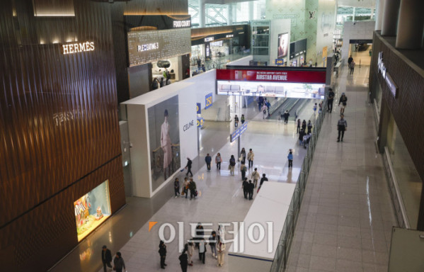 원·달러 환율이 고공행진하면서 면세점 업계에도 경고등이 켜졌다. 9일 서울 외환시장에서 원·달러 환율은 오전 10시 기준 전날 주간 거래 종가보다 9.8원 오른 1483.0원을 기록했다. 이는 2009년 금융위기 이후 가장 높은 수준이다. 한국면세점협회에 따르면 1월 월간 면세점 매출액은 9544억원으로 전년 동월보다 40% 급감했다. 면세점 월매출이 1조 아래로 떨어진 것은 지난해 2월 이후 처음이다. 면세점 수익 악화는 중국 단체 관광객과 보따리상 거래 감소의 영향과 원·달러 환율 상승으로 인한 가격경쟁력 하락이 이유로 풀이된다. 이날 인천국제공항 제2여객터미널 면세점이 한산한 모습을 보이고 있다. 조현호 기자 hyunho@