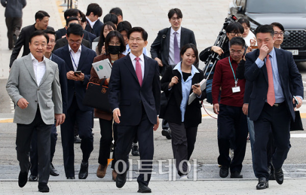 ▲김문수 전 고용노동부 장관이 9일 서울 여의도 국회 소통관에서 제21대 대통령 국민의힘 경선후보 출마 선언을 하기 위해 이동하고 있다. 고이란 기자 photoran@