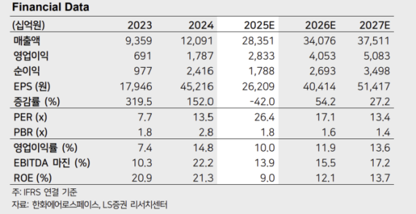 LS증권은 10일 한화에어로스페이스에 대해 유럽 방위산업 빅사이클 안에서 가장 큰 혜택을 받을 것이라며 목표주가를 86만 원으로 기존 대비 17.8% 상향 조정했다. 투자의견은 매수를 유지했다.