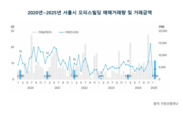 정수민 부동산플래닛 대표는 “2월 서울 오피스빌딩 매매 시장은 대형 거래 한 건으로 거래액이 급증했지만, 거래 건수는 여전히 평년 수준을 밑돌아 투자 수요가 회복됐다고 보긴 어렵다”며 고 말했다.