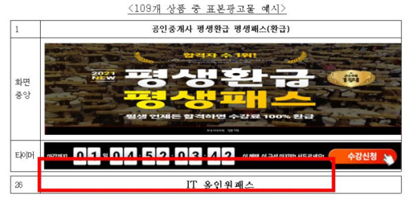 온라인 강의서비스 업체인 '에듀윌'과 '에스티유니타스'가 기간 한정이라고 광고한 뒤에도 계속해서 같은 구성과 가격으로 판매해 시정 명령과 공표 명령, 과징금을 물게 됐다.
