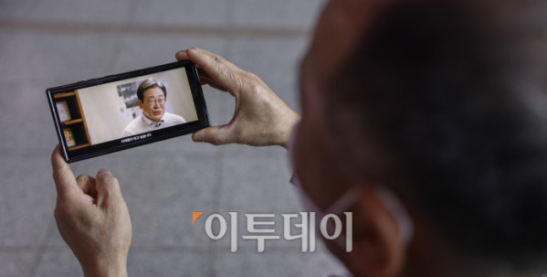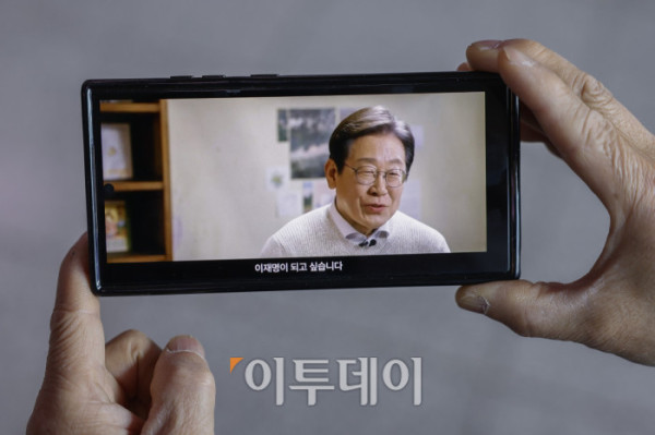 ▲이재명 더불어민주당 전 대표가 영상을 통해 대선 출마를 선언한 10일 서울 용산구 서울역 대합실에서 한 시민이 스마트폰으로 이 전 대표의 제21대 대통령 선거 출마 선언 영상을 시청하고 있다. 이 전 대표는 이날 다큐멘터리 형식의 10분 분량 영상을 통해 대선 출마 선언을 했다. 조현호 기자 hyunho@