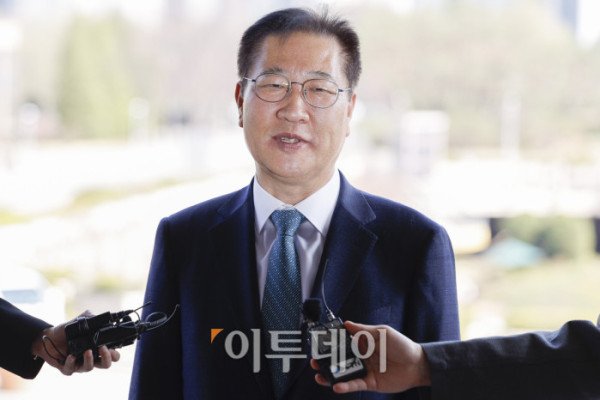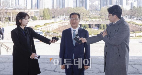 ▲박성재 법무부 장관이 10일 경기 과천시 법무부에 업무복귀를 위해 출근하며 입장을 밝히고 있다. 이날 헌법재판소는 박 장관에 대한 국회의 탄핵소추를 기각했다. 조현호 기자 hyunho@