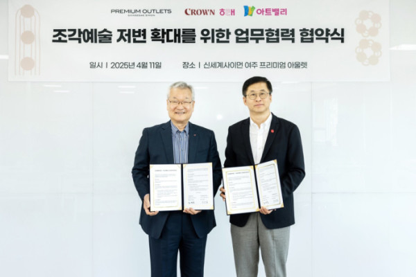 신세계사이먼은 11일 크라운해태제과그룹과 조각 예술 저변 확대를 위한 업무협약(MOU)을 맺었다고 밝혔다.