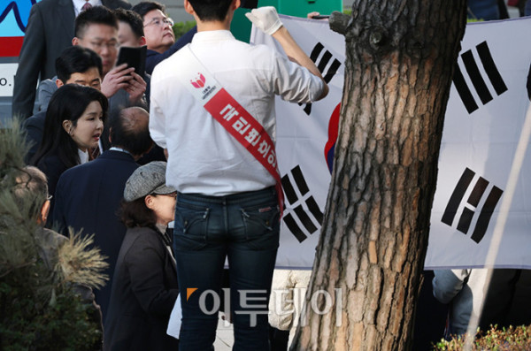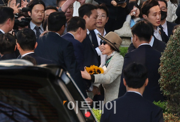 ▲윤석열 전 대통령 부인 김건희 여사가 11일 서울 서초구 아크로비스타 사저에 들어서고 있다. 고이란 기자 photoeran@