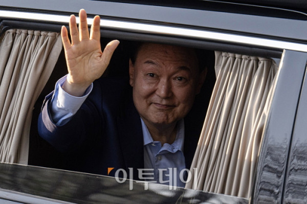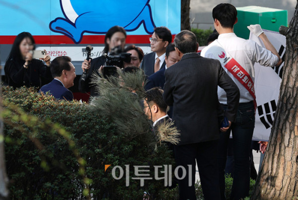 ▲윤석열 전 대통령이 11일 서울 서초구 아크로비스타 사저에 들어서고 있다. 고이란 기자 photoeran@