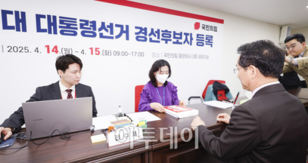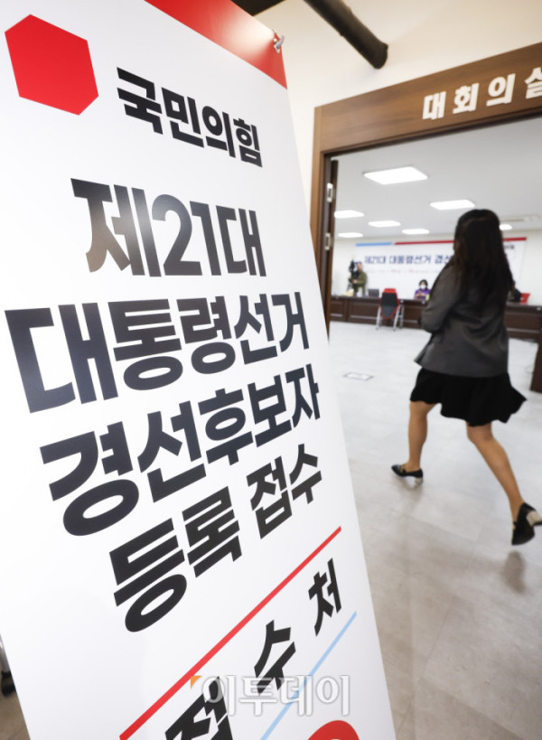 ▲국민의힘 제21대 대통령 선거 경선후보자 등록 접수가 시작된 14일 서울 영등포구 국민의힘 중앙당사에 마련된 접수처 모습. 국민의힘 경선 선거관리위원회는 이날부터 15일까지 이틀간 대선 경선 후보자 등록 신청을 받는다. 조현호 기자 hyunho@