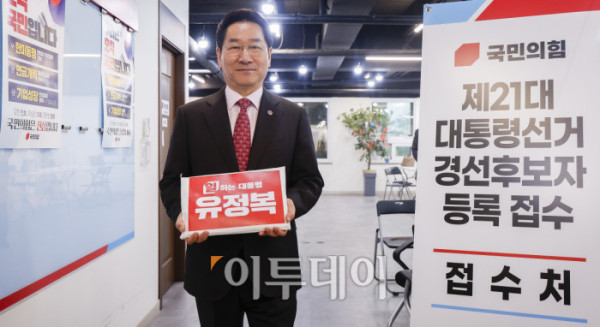 ▲국민의힘 제21대 대통령 선거 경선후보자 등록 접수가 시작된 14일 서울 영등포구 국민의힘 중앙당사에서 유정복 인천시장이 후보자 접수를 하고 있다. 국민의힘 경선 선거관리위원회는 이날부터 15일까지 이틀간 대선 경선 후보자 등록 신청을 받는다. 조현호 기자 hyunho@