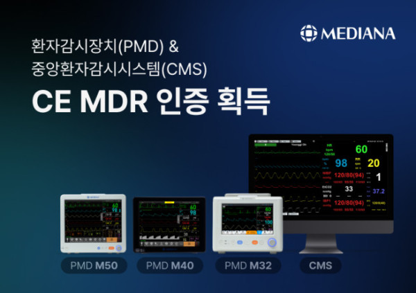 의료기기 및 인공지능(AI) 의료 전문기업 메디아나는 자사 환자감시장치(Patient Monitor Device, PMD) 전 모델과 중앙환자감시시스템(Central Monitoring System, CMS)이 유럽 CE MDR(Medical Device Regulation) 인증을 획득했다고 14일 밝혔다.