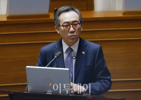 ▲조태열 외교부 장관이 14일 서울 여의도 국회 본회의에서 열린 정치·외교·통일·안보 분야 대정부질문에서 의원 질의에 답하고 있다. 고이란 기자 photoeran@