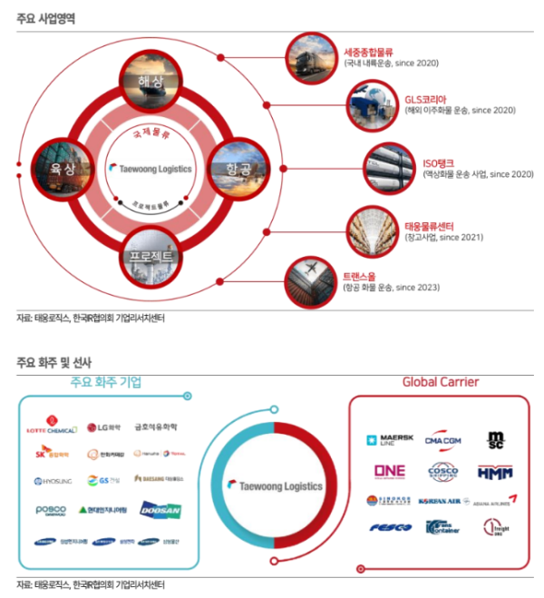 태웅로직스는 국내 최대 3PL(3자물류) 종합물류기업으로 매출의 약 60%가 석유화학제품 운송에 특화돼있다. 주요 화주기업으로는 롯데케미칼, LG화학 등 석유화학업체 및 GS건설, POSCO대우, 삼성엔지니어링 등과 거래하고 있다.