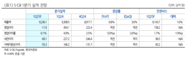 현대차증권에 따르면 S-Oil의 1분기 실적은 매출 9조2000억 원(-0.8% yoy), 영업적자 119억 원으로 적자전환하며 컨센서스를 크게 하회하는 부진한 실적이 전망된다.