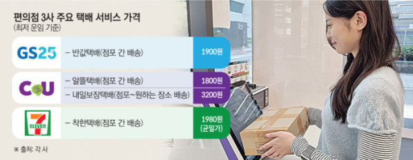 16일 유통업계에 따르면 국내 편의점 빅3 업체는 최근 신규 택배 서비스를 잇달아 론칭하며 신성장동력으로 삼고 있다. BGF리테일이 운영하는 CU는 익일배송 ‘CU내일보장택배’ 서비스를 14일부터 시작했다. 소비자가 오후 6시 이전 택배를 접수하면 다음 날 바로 배송된다. 도착까지 2~3일가량 소요되는 일반 택배보다 더 빠르다. CU는 기존 택배의 경우 늦은 오후 한번 수거하지만, 내일보장택배는 새벽 4시, 오후 6시 두번 수거해 익일배송을 구현했다. 빠른 배송임에도 일반택배보다 운임은 저렴하다. 500g 미만 물품은 가장 저렴한 3200원이며 3~5kg 물품은 5400원에 불과하다. 같은규격 일반택배와 비교하면 최대 37%가량 싸다. CU는 이달 서울 지역에서 시작, 추후 수요를 모니터링해 내일보장택배를 전국 주요 도시로 확대할 계획이다.