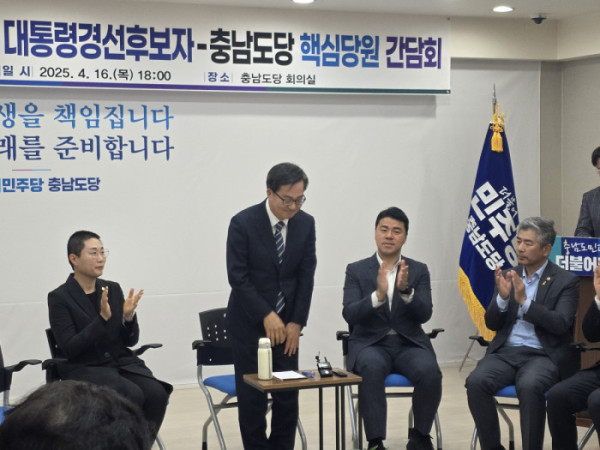 김 지사는 16일 충남 천안시에 있는 민주당 충남도당에서 당원들과 간담회를 가졌다. 첫 순회 경선지인 충청권 표심을 얻기 위한 경쟁에 본격 뛰어들었단 분석이 나온다.
