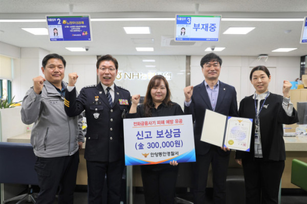 한편, 농협은행 평촌지점 A 과장은 전년 12월에도 전화금융사기 인출책 검거에 도움을 줬다.