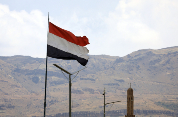 ▲예멘 사나의 한 광장에서 예멘 국기가 펄럭이고 있다. EPA연합뉴스