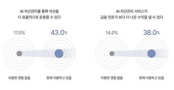 그러나 AI 상담 서비스를 둘러싼 ‘신뢰 부족’ 문제가 제기된다. 하나금융연구소가 발간한 ‘2025 대한민국 웰스 리포트’에 따르면 금융자산이 10억 원 이상인 부자 고객 대상 조사 결과 AI가 추천, 진행하는 자산운용ㆍ투자 관리 서비스를 신뢰한다는 응답은 15%에 불과했다. AI 서비스를 경험해본 경우 신뢰도는 상승했지만 34%에 그쳐 여전히 불신한다는 응답이 우세했다. 하나금융연구소는 자산관리에 있어 ‘신뢰’를 중시하는 고객들이 AI를 아직 믿지 못하는 것이라고 분석했다.