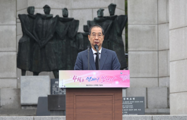 한 대행은 “4·19 혁명은 모두가 기억해야 할 대한민국 민주주의 역사의 빛나는 성취”라며 “자유와 민주와 정의를 상징하는 그날의 정신은 대한민국 헌법의 토대가 됐다. 우리 민주주의를 바로 세우고 자랑스러운 나라를 만든 원동력이 됐다”고 평가했다.