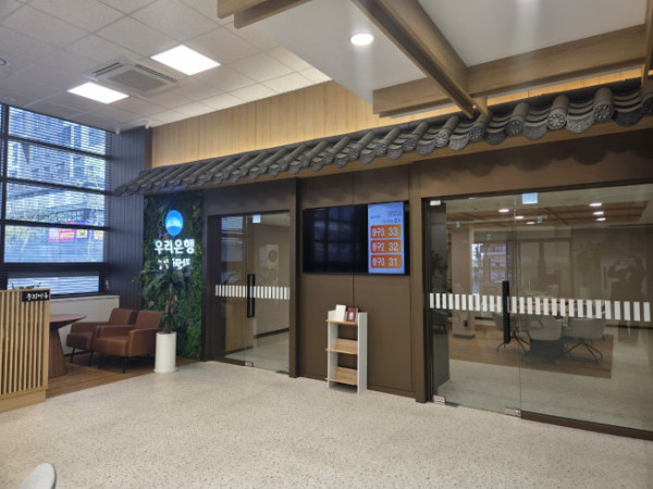 영등포시니어플러스 지점은 우리은행이 2023년 4월 문을 연 시니어 특화 점포다. 입구부터가 일반 은행 점포와 다르다. 휠체어로 편리하게 이동할 수 있도록 경사로가 설치돼 있고, 내부에는 어르신들을 위한 푹신한 의자들이 놓여 있다. 특히 한쪽에는 고령자들의 모임 장소 및 금융 교육 공간으로 이용 가능한 '사랑채'가 넓직하게 자리잡고 있다.