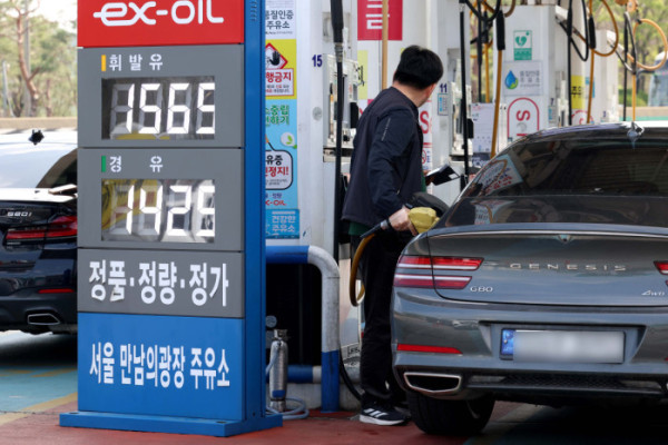 국내 주유소 휘발유와 경유의 주간 평균 가격이 10주 연속 동반 하락했다. 20일 한국석유공사 유가정보시스템 오피넷에 따르면 4월 둘째주(13~17일) 전국 주유소 휘발유 평균 판매가는 지난주보다 리터(L)당 13.8일 내린 1644.8원을 기록했다. 경유 평균 판매 가격은 전주 대비 13.6원 낮은 1511.2원을 나타냈다. 대한석유협회는 “지난주 국제유가 하락 폭에 비해 이번 상승 폭이 미미해 향후 2주간 국내 주유소 가격도 약세를 보일 것”이라고 전망했다. 이날 서울 서초구 만남의 광장 주유소에서 시민들이 주유를 하고 있다.