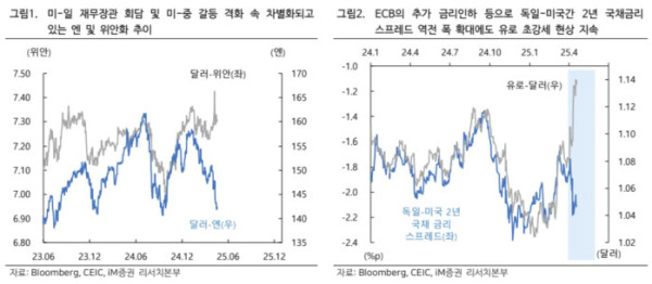 박상현 iM증권 연구원은 "미국의 대중국 고율 상호관세 시행에 이은 반도체 수출 규제, 중국 선박에 대한 항만세 도입 등 대중국 압박 수위 고조 등으로 위안화는 달러 약세에도 약세 흐름"이라고 설명했다.