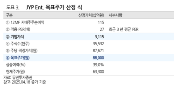 21일 유진투자증권은 JYP엔터(JYP Ent.)에 대한 투자의견을 ‘매수’로 유지, 목표주가를 8만8000원으로 상향 조정한다고 밝혔다. 현재주가(18일 기준)는 6만3300원이다.