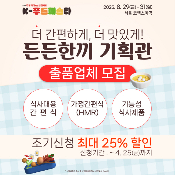 이러한 흐름 속에서 식품 산업 전반의 가치와 가능성을 소비자, 시장, 글로벌 기회와 연결하는 국내 대표 식품 플랫폼 ‘K-푸드페스타 2025’가 오는 8월 29일부터 31일까지 서울 코엑스 마곡 행사장에서 개최된다.