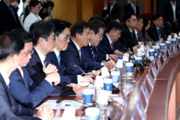 ▲이재명 더불어민주당 대선 경선 후보가 21일 서울 여의도 금융투자협회에서 열린 ‘자본시장 활성화를 위한 정책간담회’에 참석하며 주요 증권사 리서치센터장들과 인사하고 있다. 신태현 기자 holjjak@