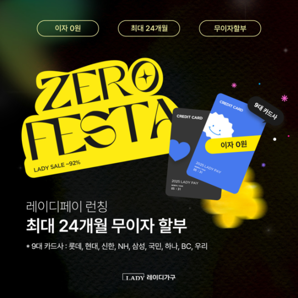 ‘레이디 제로 페스타’는 레이디가구 공식 온라인몰을 통해 누구나 참여할 수 있으며 행사 관련 자세한 내용과 혜택 정보는 해당 홈페이지에서 확인할 수 있다.