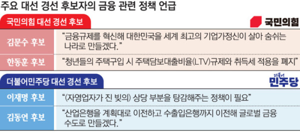 6·3 대선을 앞두고 정치권에서 청년·서민층의 표심을 겨냥해 흘러나오는 금융 정책 발언들이 금융권의 혼란을 키우고 있다.