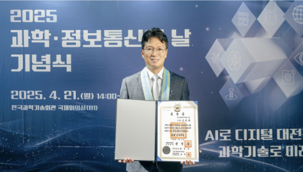 도승용 SK하이닉스 부사장(DT담당)이 서울 강남구 한국과학기술회관에서 열린 ‘2025년 과학·정보통신의 날 기념식’에서 정보통신 부문 동탑산업훈장을 수상했다.