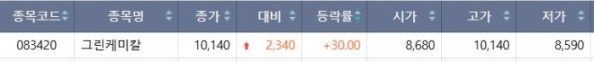 그린케미칼은 30.00% 오른 1만140원에 마감했다.