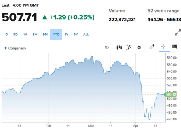 ▲스톡스유럽600지수 추이. 22일(현지시간) 종가 507.71. 출처 CNBC