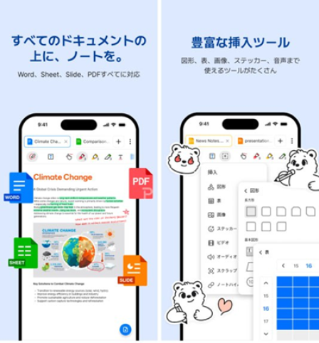 워드, 엑셀, PPT, PDF 등 다양한 문서 위에 직접 필기할 수 있으며, 멀티뷰·자동 썸네일 기능을 통해 자료 수집과 정리에 최적화된 사용자 경험을 제공한다. 도형 삽입, 표 작성 등 콘텐츠 품질을 높이는 편집 기능도 함께 탑재돼 있다.