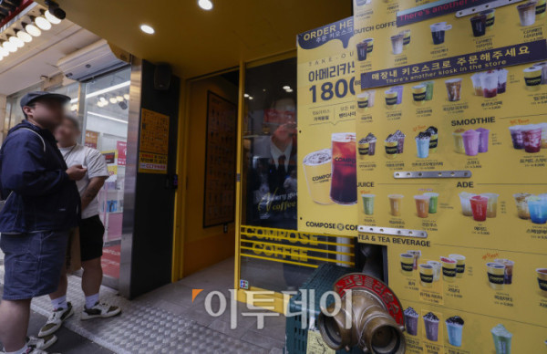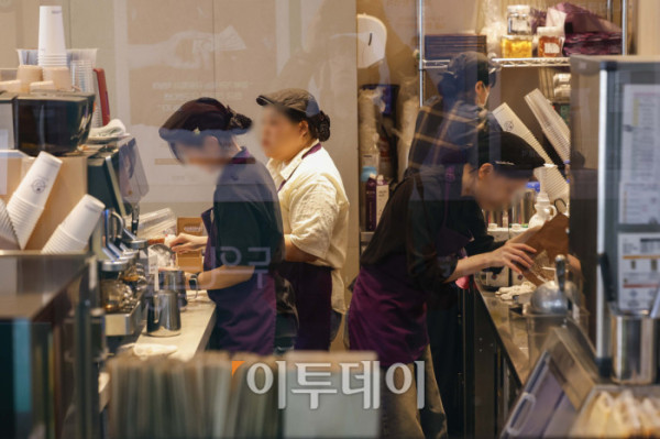 ▲5월 황금연휴를 앞두고 직장인들의 기대감이 고조되는 가운데 정기 휴무일 없이 쉬지 않고 일해야 하는 프랜차이즈 가맹점이 17만 개에 달하는 것으로 나타났다. 23일 통계청 국가통계포털(KOSIS)와 프랜차이즈(가맹점) 조사 결과에 따르면 2023년 기준 15개 주요 업종(기타 제외) 가맹점 가운데 정기휴무일이 없는 곳은 16만9364개로 집계됐다. 이는 전체 가맹점(27만86개)의 62.7%에 달하는 비율이다. 이날 서울 시내의 한 프랜차이즈 카페에서 시민들이 음료 주문을하고 있다. 조현호 기자 hyunho@