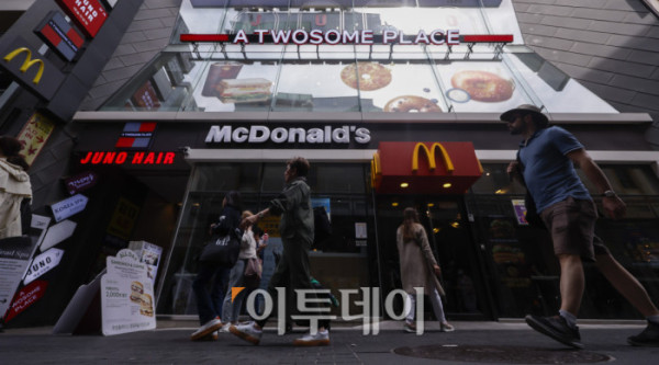 ▲5월 황금연휴를 앞두고 직장인들의 기대감이 고조되는 가운데 정기 휴무일 없이 쉬지 않고 일해야 하는 프랜차이즈 가맹점이 17만 개에 달하는 것으로 나타났다. 23일 통계청 국가통계포털(KOSIS)와 프랜차이즈(가맹점) 조사 결과에 따르면 2023년 기준 15개 주요 업종(기타 제외) 가맹점 가운데 정기휴무일이 없는 곳은 16만9364개로 집계됐다. 이는 전체 가맹점(27만86개)의 62.7%에 달하는 비율이다. 이날 서울 시내의 한 프랜차이즈 패스트푸드점 앞으로 한 시민이 발걸음을 옮기고 있다. 조현호 기자 hyunho@