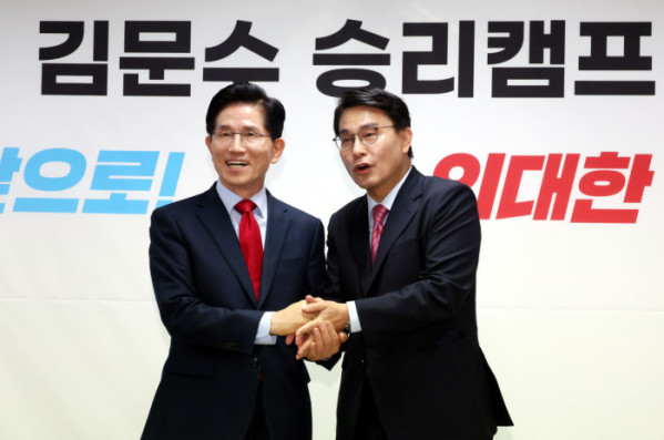 김 후보는 “윤 의원이 각 지역 단체 회장 지도자와 함께 와서 지지해주니 기운이 난다”라며 “우리 모두가 뜻을 모아 반드시 승리하겠다”고 화답했다.