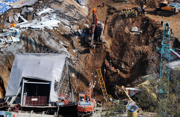 ▲붕괴 사고가 발생한 경기 광명시 신안산선 지하터널 공사 현장에서 16일 구조대원들이 현장을 살펴보고 있다. (연합뉴스)