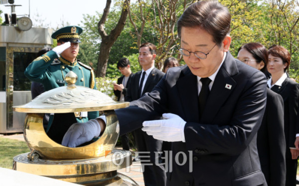 더불어민주당 이재명 대선 후보가 첫 공식 일정으로 28일 국립서울현충원을 찾아 이승만·박정희 전 대통령 묘역을 참배하며 통합 행보를 시작했다.