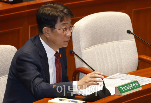 ▲박상우 국토교통부 장관이 28일 서울 여의도 국회에서 열린 예산결산특별위원회 전체회의에서 2025년도 제1회 추가경정예산안 관련 의원 질의에 답하고 있다. 고이란 기자 photoeran@