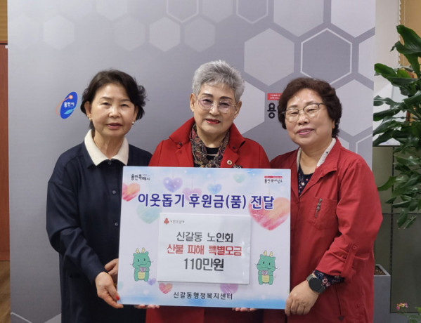 기흥구 신갈동 노인회는 22일, 산불 피해로 어려움을 겪고 있는 영남 지역 이재민을 돕기 위해 성금 110만 원을 기탁했다.