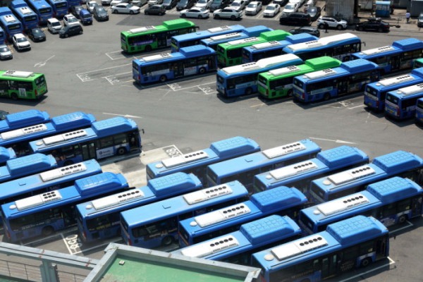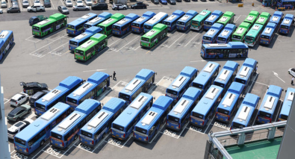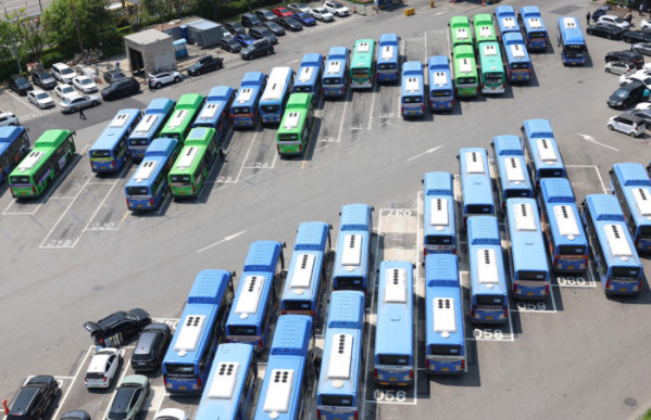 ▲서울 시내버스 노사의 올해 임금·단체협상 교섭이 난항을 겪으면서 노조가 파업 돌입을 위한 쟁의행위 절차에 들어갔다. 28일 서울의 한 차고지에 시내버스가 주차돼 있다. 서울시버스노동조합은 이날 전체 조합원을 대상으로 쟁의 행위 찬반 투표를 진행한다. 투표에서 쟁의행위 안건이 가결되고 2차 조정일인 29일 자정까지 합의가 이뤄지지 않으면, 노조는 30일부터 준법 투쟁(태업)이나 파업에 나설 수 있다. 파업이 현실화할 경우 지난해에 이어 2년 연속 파업이다. 신태현 기자 holjjak@