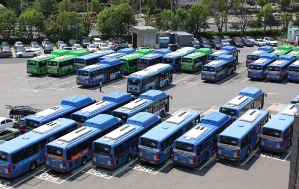 서울 시내버스 노사의 올해 임금·단체협상 교섭이 난항을 겪으면서 노조가 파업 돌입을 위한 쟁의행위 절차에 들어갔다. 28일 서울의 한 차고지에 시내버스가 주차돼 있다. 서울시버스노동조합은 이날 전체 조합원을 대상으로 쟁의 행위 찬반 투표를 진행한다. 투표에서 쟁의행위 안건이 가결되고 2차 조정일인 29일 자정까지 합의가 이뤄지지 않으면, 노조는 30일부터 준법 투쟁(태업)이나 파업에 나설 수 있다. 파업이 현실화할 경우 지난해에 이어 2년 연속 파업이다.